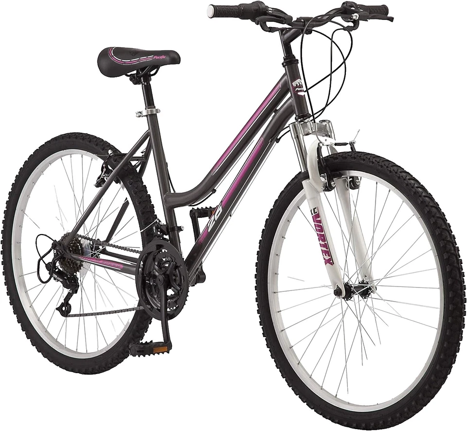 Bicicleta de montaña pacific para mujer, ruedas de 26 pulgadas, cambios giratorios de 16 velocidades